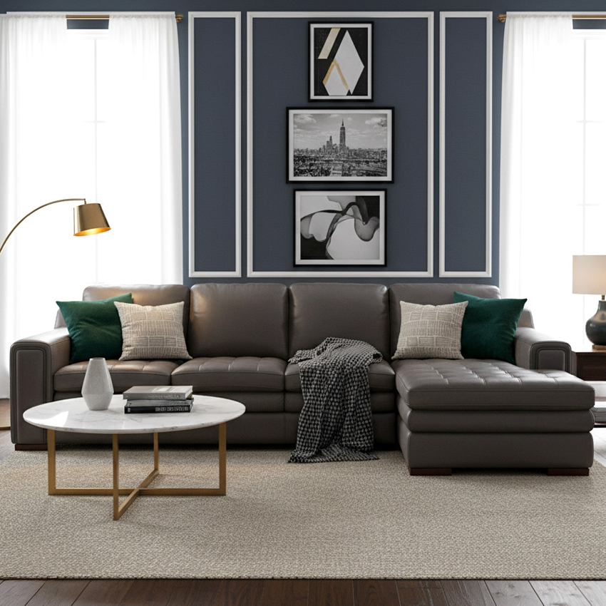 7491-Coastal GreyLeather Chaise Sofa